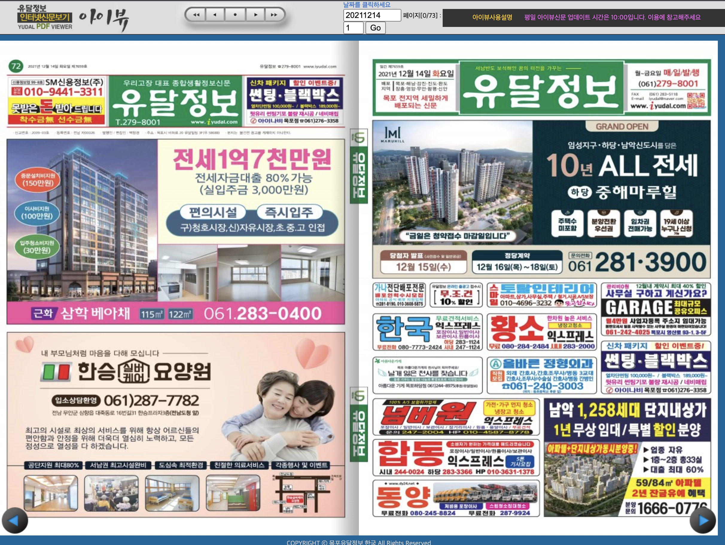 하지만 구인구직 페이지가 바로 보이지 않아 당황하셨을거라 봅니다. 메뉴 상단에 위치한 구인/구직 버튼을 누르면 유달정보 구인구직 페이지로 이동합니다. 혹은 메인 페이지 전체메뉴보기 아래에 있는 유달정보 PDF 신문보기 버튼을 눌러주셔도 됩니다.